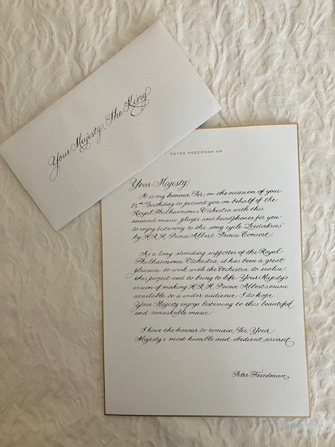 to HM King Charles accompanying a gift
